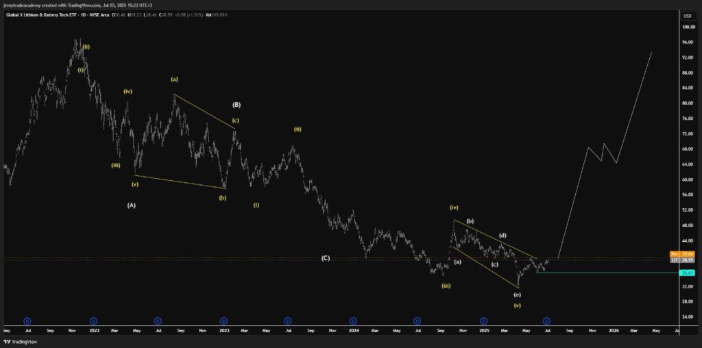 - Figure 1: Global X Lithium & Battery Tech ETF Analysis (Before the Breakout) – Identifying the Corrective Pattern